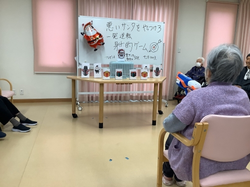 午前中のプログラムは「悪いサンタをやっつけろ!一発逆転射的ゲーム」を行いました。